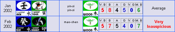 All possible combinations and clashes will be compared for each day to your ba zi chart